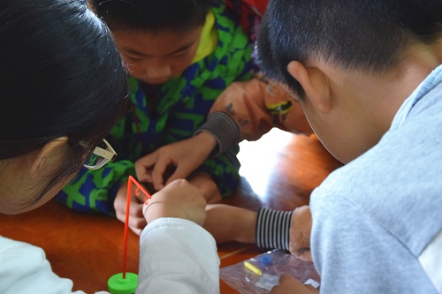 一日的活动由“大学微讲堂”开始,志愿者为小朋友们播放了涵盖南京邮电大学全景的视频,孩子们惊叫连连,眼中流露出渴望与向往。志愿者们坐在孩子们中间,鼓励他们说出自己的梦想。在孩子们期待的“科学微讲堂”中,志愿者就中国“新四大发明”:淘宝、支付宝、共享单车、高铁,为小朋友们作了极富趣味性的介绍。而后志愿者们和小朋友们一起,分组利用准备的实验材料,模拟了磁悬浮的原理,并体验了“地磁场”的存在。志愿者们也为小朋友们带来了惊喜,在进行无人机的构造与飞行原理的讲解后,现场为他们展示了无人机的飞行,并在高空为大家拍摄了合照。