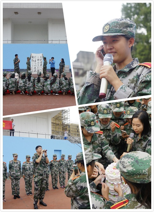 首先,军训团王铁根营长一声令下,五百余名还在休息中的小柚子们迅速集合。新葡的京集团35222vip党委副书记邓艳华和2017级辅导员老师走上前来,面色凝重,神情严肃,声称要开“批斗大会”,四十多位小柚子被号令出列,个个战战兢兢,屏住呼吸。突然主席台上缓缓拉开一道横幅:新葡的京集团35222vip2017级新生集体生日会,此时剧情反转,小班们将七层的生日蛋糕推进训练场,还有数箱苹果……一惊一乍一喜,原来是为九月出生的萌新们举办生日party。小柚子们难掩心中激动,尖叫声、欢呼声此起彼伏。