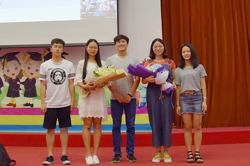 至此,大会迎来了核心部分,辅导员刘伟老师代表全体学生欢送转出本院的十位同学,并将由各个班长录制的视频播放给同学们看,将现场氛围推向了高潮。同时,热烈欢迎转入新葡的京集团35222vip的四位新同学,并请到会的卫晓歌、李思静同学作简短自我介绍,由各自班长送上美丽的鲜花。