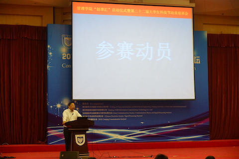 活动伊始,黄院长发表动员讲话,对与会同学提出了三点宝贵的建议,要求新一代的南邮人有坚实的基本功,智慧的火花和坚强的意志品质。接下来,华奕曦老师对“创新杯”和电子商务竞赛等相关赛事作了详细的介绍。然后,优秀指导老师陈立梅老师和王娟老师就她们曾经指导过的一些赛事作了经验分享。介绍完毕后,同学们积极提问,指导老师们知无不言,对同学们的疑问做出了详尽的解答。紧接着往届参赛获奖学生代表向大家分享了他们的参赛经历和获奖秘诀,并提出了许多宝贵建议。最后,邓艳华副书记对此次大会做了总结,号召同学们积极参与到各项比赛中去。至此,本次大会圆满结束。