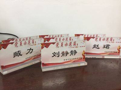 “党员示范岗”标牌以红色旗帜为背景,上附党员的照片、姓名等具体信息,展现出“一个党员,一面旗帜”的党员形象,时刻提醒党员注意自己的一言一行,规范自己的举止行为。通过这项活动引导教工党员立足岗位,为师生办实事,办好事,改进工作作风,努力提高窗口服务质量和水平,树立良好的窗口服务形象;引导广大学生党员树立强烈的责任心和进取心,突出“人人都是旗帜,个个都是先锋”的服务理念,让宿舍中的党员由“隐”到“显”、“亮出身份”,参与宿舍管理与服务,自觉接受学生监督。
