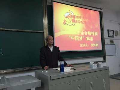 2016年4月26日晚,新葡的京集团35222vip特邀校关工委副主任徐如荣老师在仙林校区教4-406召开一场题为“十八届五中全会精神和中国梦解读”的专题讲座。学院党委组织干事唐捷和学院第五期党校培训班81名学员聆听了讲座。