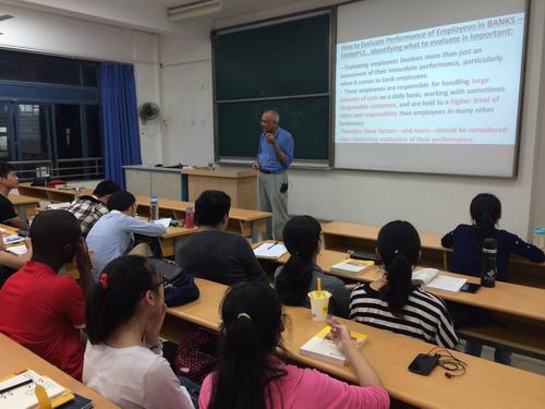 为了大家更好地了解美国大学生的学习与就业情况,Qadir Mohiuddin教授又针对美国企业的绩效考评制度为大家讲解。通过对一系列具体案例的展示与阐述,Qadir Mohiuddin教授将一个立体的美国社会展现给了大家。同学们热情高涨,纷纷表达自己的看法并结合自身情况向Qadir Mohiuddin教授提问。