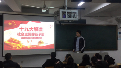 第二部分为学生党员讲党课。本次党课由第三党支部优秀学生党员梁擎宇同志为大家开展主题为《党的十九大解读——社会主要的新矛盾》的微党课学习。梁擎宇同志准备充分,语言生动,宣讲深入浅出,角度新颖,要求党员同志树立起正确的历史观、民族观、国家观和文化观,重点讲解加强互联网内容建设,建立网络综合治理体系,营造清朗的网络空间的重要性,并通过具体实例强调大学生在公共网络空间领域慎言慎行。并带领全体党员同志表态:“党员同志要做出表率,不信谣,不传谣,有关涉及国家机密的文件不发。”学生党员上党课形式极大增加了党员的自我学习意识,听课学生学员通过认真记录、座谈讨论、课后感言等多种形式,加深了对党的理论知识的理解。