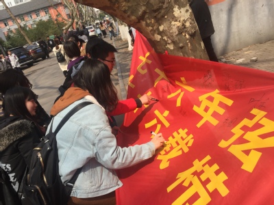 在横幅签名、手写祝福、随机采访活动中,同学们用文字、镜头记录下心声,以独特的方式表达了自己对76周年校庆的祝福和对学校未来发展的希冀。通过此活动大家充分认识到,作为新葡的京集团35222vip的一份子,每一位学生及党员都应在做好本职工作的基础上,努力为学校的发展添砖加瓦,与学校。