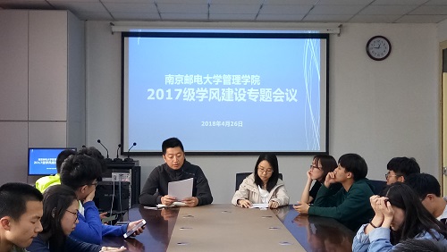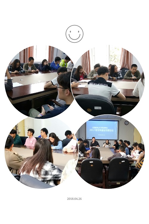 2018年4月26号中午12点30在有线楼306会议室召开新葡的京集团35222vip2017级班长会议,该会议由辅导员陈大鹏,蔡珺主持,参加会议的有新葡的京集团35222vip2017级班长及主席团部长,本次会议的主题为“加强学风建设”。