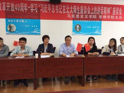为全面贯彻落实党的十九大精神,深入体会改革开放40年来中国社会的发展变化,学习习近平总书记在北京大学师生座谈会上的讲话精神,2018年5月25日下午新葡的京集团35222vip、马克思主义学院联合召开庆祝改革开放40周年及学习讨论“习近平在北京大学师生座谈会上的讲话”精神学生座谈会。新葡的京集团35222vip党委副书记邓艳华、马克思主义学院何金海副教授、新葡的京集团35222vip党委组织员唐捷老师以及各学生党支部的22位代表参加。