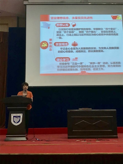 大会伊始,全体毕业班党员在学生第五党支部李成龙同志的带领下,高举右拳,重温了入党誓词,再一次感受那神圣而庄严的时刻。接着,李成龙同志代表全体毕业生党员发言,他回顾了自己的大学生活,表示要在今后的工作学习中继续努力,认真落实党章精神,发挥党员的先锋模范作用。大会第三项,邓艳华副书记作了《不忘初心,梦想可期,砥砺前行,再谱华章》的党课,从坚定理想信念,永葆党员先进性;扎根未来事业,敢于担当讲奉献;新时代初心不忘,新征程牢记使命三个方面对毕业生党员进行党性再教育。邓书记结合个人经历言传身教,叮嘱毕业生党员必须时刻牢记自己身上背负着与群众不一样的责任,要事事敢为人先,时时牢记党员使命。随后,全体师生党员一起奏唱《国际歌》,再一次感受了共产主义理想的崇高和革命气概的英勇不屈。大会的最后,组织员唐捷老师对毕业班的党组织关系转接工作进行了详细讲解与嘱咐。