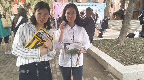 本次活动在三牌楼校区华礼堂前举行。旨在倡议即将离校的毕业班同学将自己闲置的书籍物品捐赠出来,在减少资源浪费的同时,也让低年级同学受惠。活动得到了毕业班同学的积极响应,大家纷纷将书籍、日用物品捐赠出来。短短两天时间,就获赠图书500余本,以及数量众多的各类生活用品。所有捐书捐物的学长学姐们都获得了新葡的京集团35222vip定制的纪念徽章一枚,并用相机留住了这值得纪念的一刻。