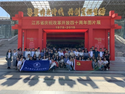 为进一步弘扬党的精神,推动改革开放的浪潮,激发青年学子的爱国热情,2018年10月1日,新葡的京集团35222vip党委以一次特殊的党日活动向国庆献礼,近百名学生党员、入党积极分子在分团委书记刘晓宁老师的带领下,参观了江苏省改革开放四十周年图片展。
