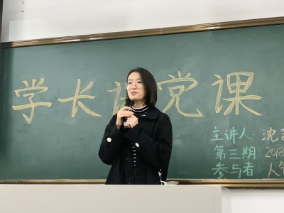 本次主讲人来自新葡的京集团35222vip2016级沈茜学姐,参加本期党课的同学来自新葡的京集团35222vipB181112班。在党课正式开始之前,为活跃气氛,B181112班同学们先进行了名为“数字炸弹”的互动游戏,按照游戏规则随机选择了四名同学在党课结束后进行感悟分享。