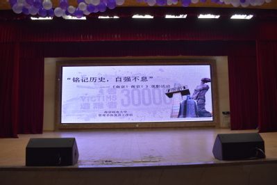 活动伊始,全场同学起立默哀一分钟,表达对大屠杀遇难同胞沉重的悼念。随后,同学们将手机关至静音,认真观看影片《南京!南京!》。该影片再现了日军侵华时在南京犯下的滔天罪行,表现了侵略者的惨无人道,战争给人民带来的残酷以及和平的珍贵。影片结束后,全体观影同学怀着沉痛的心情在“铭记历史,自强不息”横幅上签下了自己的名字,提醒自己以历史为鉴,艰苦奋斗。
