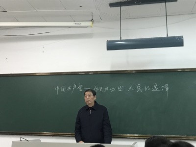 马名骞教授以“中国共产党—历史的必然、人民的选择”为主题,从近代中国苦难而又屈辱的历史背景讲起,提到了先驱们艰苦、惨痛的探索,介绍了马克思主义传入中国后给中国带来的种种变化,以及当时人民对先进正确思想、领导的呼唤。马老师指出这些正是中国共产党成立的主要历史背景,并着重强调了中国共产党的成立是历史的必然。接着,马老师又按照时间顺序向同学们讲述近代中国的一些重要历史事件,介绍了党的奋斗历程和发展经历。最后,马教授展望了中国的未来,题写了“信仰”、“忠诚”“坚守”,希望同学们学会汲取支持自己信仰的养分,端正自己的入党动机,学好党史,听好党课,为社会主义建设添砖加瓦、为实现中华民族伟大复兴而奋斗。