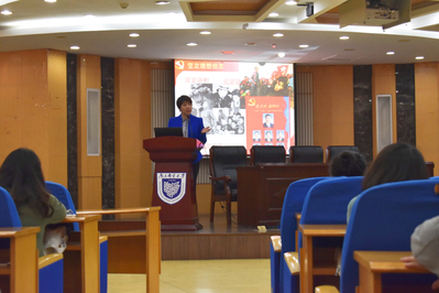 邓艳华副书记为大家带来了“坚定理想信念,做新时代先锋”的专题党课。她从第一堂党课提出的“你为什么要入党”问题出发,为同学指明党不仅仅是可以燎原的“星火”、指引方向的旗帜,更喻示着未来,带领全国人民实现中华民族伟大复兴的中国梦。接着,邓书记联系现实,提出如何“做新时代先锋”的具体做法,并鼓励大家读万卷书,行万里路。她指出“做新时代的先锋”不是一朝一夕所达成的,应从“自身建设”、“学习竞赛”、“公益事业”、“为民服务,创先争优”四个方面完善提高。最后以习近平总书记在北大师生座谈会上向青年学子们提出的四点希望作结,告诫大家以“爱国、励志、求真、力行”为座右铭,勤学苦练、追求卓越,为国家富强、民族振兴、人民幸福、学校发展做出自己的贡献,绽放青春光彩,实现人生梦想。
