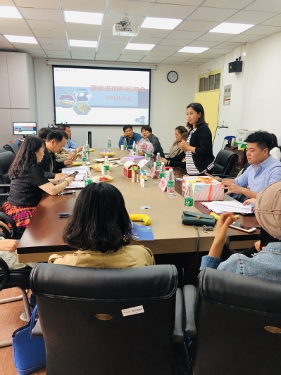 2019年5月6日下午,新葡的京集团35222vip分工会在306会议室举行教职工生日蛋糕券团购咨询会,新葡的京集团35222vip党委副书记、工会主席邓艳华和李淑娟、赵珺老师,其他分工会20余位代表与蛋糕供应商面对面洽谈。