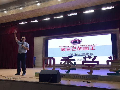 金秋九月,丹桂飘香,三牌楼校区迎来了一群可爱的小萌新。初踏校园,每位小萌新的脸上都充满了期待与好奇。为帮助同学们明晰职业发展方向,做好未来规划,9月19日晚新葡的京集团35222vip开展“四季学堂”第十一讲,特邀江苏省培训行业联谊会创始会长、国家一级职业指导师兼人力资源管理师、南京师范大学洪海江老师莅临,主讲“做自己的国王”职业生涯规划专题讲座。此次讲座由院党委副书记、副院长邓艳华主持,500余名新同学共同聆听了讲座,华礼堂座无虚席,人气爆棚。