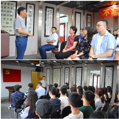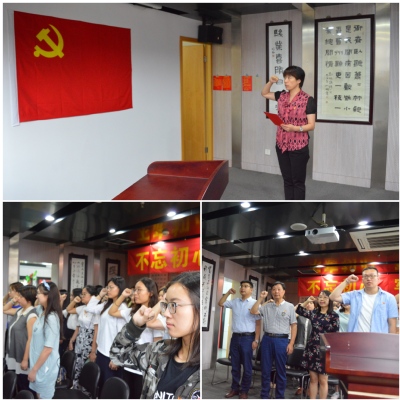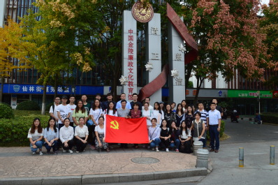 启动仪式结束后,大家一同乘车前往中国金陵廉政文化教育馆进行参观。教育馆内收藏了廉政实物五百余件,图片几千张及十余处廉政景观复制品,门口摆放的“廉镜”更是使党员同志们亲身感受到廉中有我,我中有廉,廉洁永在人心。讲解员对馆内文化的介绍使大家接受廉政文化的熏陶和洗礼。在鲜红的党旗面前,由邓书记带领大家进行新党员宣誓及老党员重温入党誓词仪式,并邀请校关工委副秘书长张和明老师为大家讲述了自己年轻时代的故事,通过重温入党经历向青年党员们表达了“青年兴则国家兴,青年强则国家强”的殷切期望。活动结束后,大家在廉政文化教育馆门口合影留念。