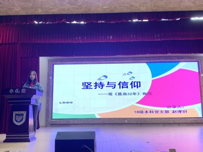 活动主要包括“观看影片”、“学习分享”、“朗诵”三部分。活动伊始,主持人张苏蒙开场致辞,宣布观影活动开始。首先全体同学一同观看了《孤岛32年》影片。视频讲述了王继才、王仕花夫妇于孤岛戍边32载的感人故事。一朝上岛,一生卫国,王继才夫妇以孤岛为家,以海水为邻,在岁月深处写下滚烫的赤子之情。他们的拳拳爱国心在感动人心之余,更鼓舞了无数后辈前仆后继地为中国梦的实现而奋斗终身。