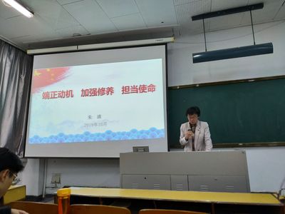仪式结束后,朱书记以 “端正动机、加强修养、担当使命”为主题为同学们带来党课第一讲。