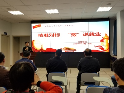 2019年11月13日下午,新葡的京集团35222vip在三牌楼校区图科楼二楼西侧路演大厅召开就业专题研讨会,邀请江苏省招生就业指导中心蒋晨阳处长担任主讲嘉宾,并作题为“新葡的京集团35222vip就业数据校本化解读”报告。学院党委理论学习中心组成员、各系部主任、党支部书记,全体辅导员参加研讨会,院党委朱清书记主持会议。学校主题教育指导组组长谢玉华书记、杨琳老师,招生就业处胡玉东处长、蒋琴雅老师到场指导。