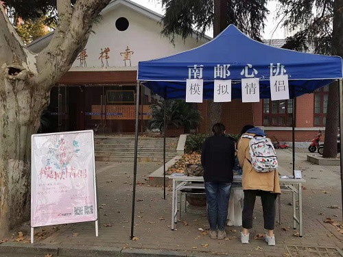 在活动的宣传和报名期间,分心协利用树洞墙、官方微信等校公共平台展开广泛宣传,协会各部部员坚守在秋风吹拂中的外场,用传单、群聊、推送等多样的方式让更多的同学了解活动内容与形式。分心协的大力宣传激发了同学们的参与热情,在活动外场,不少同学踊跃报名,期待遇见自己的那个“TA”。