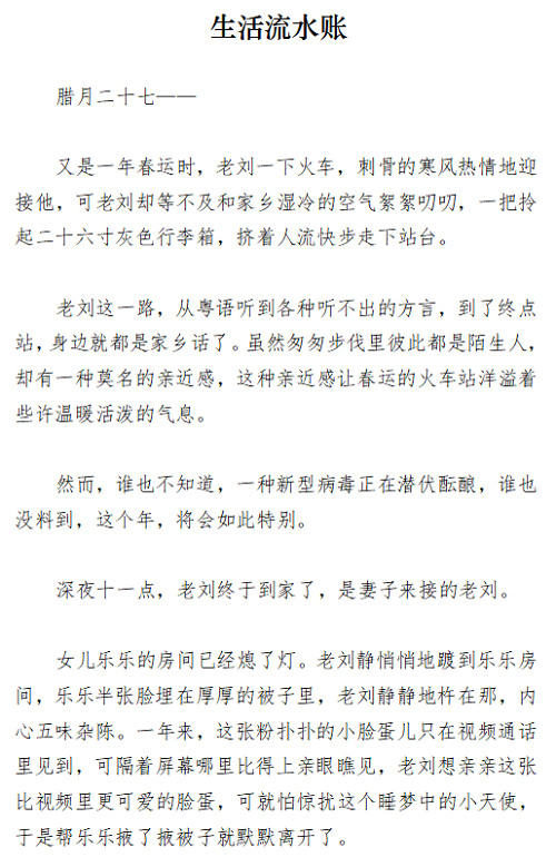 优秀奖 新葡的京集团35222vip 陈檬 《生活流水账》