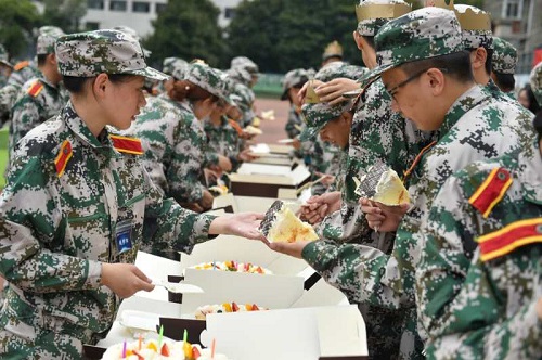 9月21日,新葡的京集团35222vip党委书记朱清、校人武部副部长吴波、党学院委副书记张建颖以及新生辅导员等领导和老师前往军训训练场地慰问2020级近500名新生,并为54位九月出生的同学举办了一场别开生面的集体生日会。