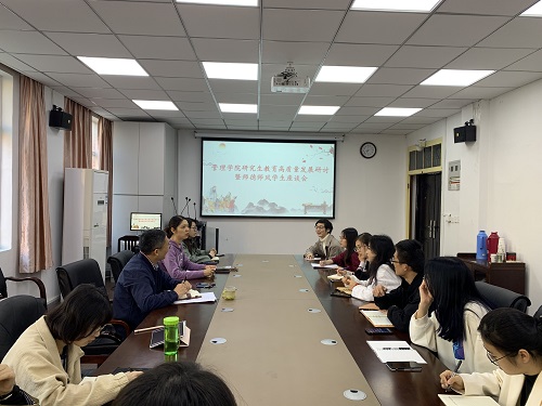 会议伊始,张冲副院长介绍了本次座谈会的主题:创新、提升研究生教育理念、培养模式等并听取学生对于师德师风的反馈。