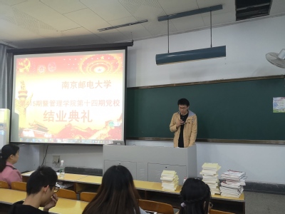 典礼由南邮校歌《信达天下》拉开序幕。首先,唐捷老师宣读本次党校优秀学员名单。随后,优秀学员代表麻成同学上台发言,和各位分享了党校学习的心得体会,并表示在之后的学习和生活中仍然会践行在党校学到的知识,从小事做起,全面发展,成为有理想,有担当,有能力的社会主义接班人。