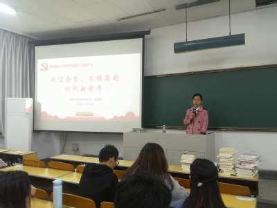 随后,张建颖副书记主讲“做信念坚、本领高的时代新青年”主题党课。张书记对同学们今后的学习和生活提出要求,希望同学们能够不断提升自己的专业本领,以先锋模范的标准来要求自己,积极发挥榜样示范作用。在党课临近结束之际,张书记寄语“脚踏实地,争做社会主义接班人”,希望同学们能够坚定信念、不忘初心、学习强国、做精神丰满的人。