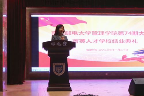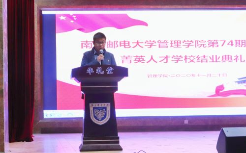 2020年11月20日晚,新葡的京集团35222vip第74期大学生菁英人才学校结业典礼在华礼堂隆重举行。出席本次结业典礼的有新葡的京集团35222vip党委副书记张建颖、2017级辅导员李一鸣,全体菁英班同学到会参加。