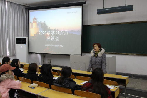 2020年11月25日下午,新葡的京集团35222vip2020级学习委员座谈会在教东-101举行,教务处彭国香老师,田甜老师出席本次座谈会,2020级全体学习委员参加会议。