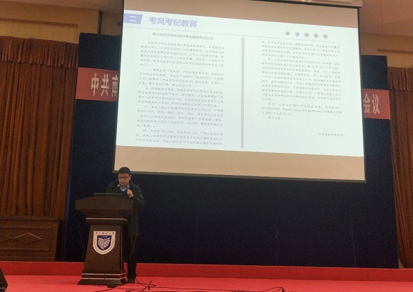 会议伊始,李一鸣老师向大家介绍了有关研究生考试的具体要求,强调了考试纪律的严格和诚信考试的重要性,带领同学学习《硕士研究生招生考试考生诚信考试公告》,并当场签写诚信考试承诺书。引导同学们在考研来临之际调节紧张情绪,以平和的心态迎接考试,同时也要端正考试态度,严格按照有关规定规范自身行为。