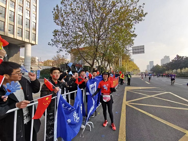 11月29日上午7:30,南京马拉松鸣枪开跑,3万余名运动员自南京奥体中心齐发,南邮跑马团的二十多位健将参与盛事。新葡的京集团35222vip依托校区紧邻新模范马路赛段的地理优势,由新葡的京集团35222vip党委副书记张建颖、本科2020级、2019级党支部书记孙晓峰带领2019级入党积极分子在学校三牌楼校区模范马路校门外为运动员们加油助威,成功助力南马。