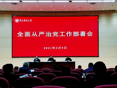2021年3月5日下午2:30,新葡的京集团35222vip党委组织干部党员参加学校2021年全面从严治党工作部署会。学院党委书记朱清、院长黄卫东在主会场仙林校区图书馆报告厅参会,学院副处级干部、正科职干部在分会场学院有线楼306会议室参加直播会议。