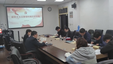 2021330日下午1800,新葡的京集团35222vip党委理论学习中心组在三牌楼校区有线楼306会议室开展新民主主义革命时期历史专题学习会。院党委宣传委员、副院长周晓剑主持。