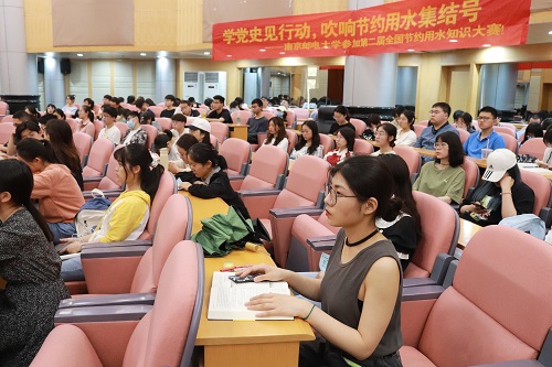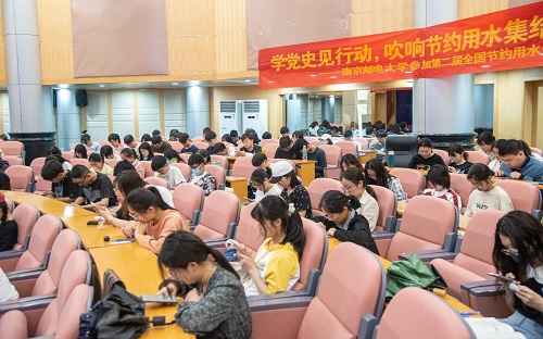 随后,同学们观看了节水行动宣传视频,鼓楼区模范马路社区、鼓楼区水务局的同志从水资源的重要性、《国家节水行动方案》解读等方面为大家讲解了节约用水的历史背景和重要现实意义。在活动现场,同学们在印有“学党史见行动,吹响节约用水集结号”的横幅上签名,参观了节约用水展板,参与了全国节约用水知识竞赛。