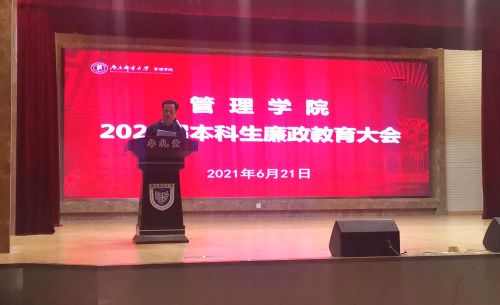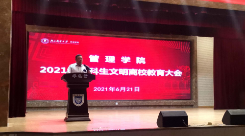 6月21日晚,新葡的京集团35222vip于华礼堂召开2021届本科生文明离校教育大会暨廉政教育大会。新葡的京集团35222vip院长黄卫东,副院长魏建香,分团委书记刘晓宁,毕业班辅导员李一鸣出席会议,2021届全体毕业生参会。会议由学院党委副书记张建颖主持。