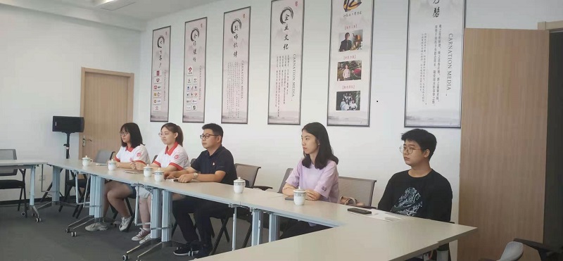 2021年7月,在指导教师李一鸣的带领下,团队成员一行来到江苏康乃馨文化传媒公司开展调研,学习交流电商平台运营、直播平台运营等新业态就业技能。公司经验丰富的品牌传播专家、资深的媒介专业团队向同学们现场介绍和教学,从包装产品形象,到自媒体平台的运营发布,同学们对电商平台运营、直播平台运营有了较为深入的认识。
