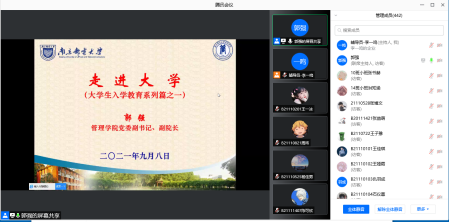 为帮助、引导我院2021级新生走好成长成才的第一步,新葡的京集团35222vip充分利用新生入学第一周,做好新生入学教育工作,引导学生坚定理想信念,提升综合素质,培养爱国爱校情怀。9月8日上午,新葡的京集团35222vip党委副书记、副院长郭强主持召开专题讲座,学院2021级本科新生及部分学生家长参与会议。
