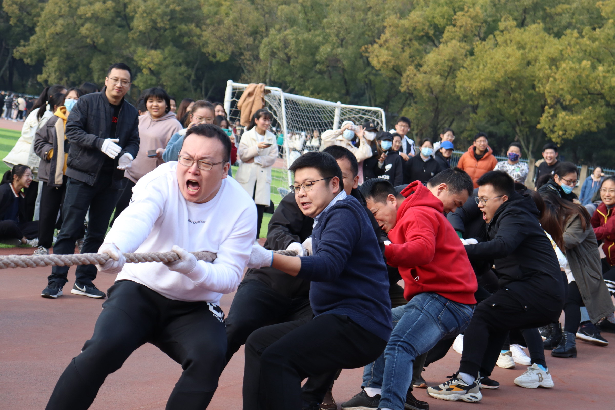 为丰富教职工的文化生活,提高教职工的身体素质,增强团结友爱精神,12月8日下午,新葡的京集团35222vip教职工在三牌楼校区操场举行2021年教职工拔河比赛。学院分工会根据教职工报名情况分成甲、乙两队。比赛开始后,加油声、欢呼声、呐喊声交织在一起,教职工们齐心协力,竭尽全力,气氛紧张而又热烈,经过激烈的三局角逐,甲队教职工以2:1获胜。参赛的教职工们在锻炼身体的同时,也为师生带来了精彩的视觉盛宴。此次拔河比赛在师生的欢声笑语中圆满结束。