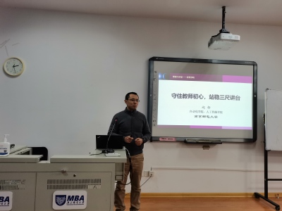 为进一步加强师德师风建设,教育引导青年教师落实立德树人根本任务,牢记为党育人、为国育才的使命,12月15日下午,新葡的京集团35222vip在三牌楼校区图科楼MBA中心教室举办“师德大讲堂”主题活动。全国高校青年教师教学竞赛工科组一等奖第一名、全国五一奖章获得者、自动化学院教授赵勃应邀做了题为“坚守教师初心,站稳三尺讲台”的精彩讲座。新葡的京集团35222vip副院长周晓剑主持讲座,学院青年教师积极参加。