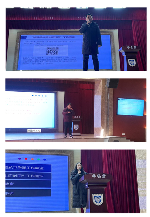最后,大会在辅导员面对面测评后正式结束。本次大会选择在考研结束后第一天召开,不仅是一次做好学期总结的大会,也是春季就业动员的大会,将进一步引导广大毕业班同学继续努力,科学规划职业生涯,为学院高质量发展作出贡献。