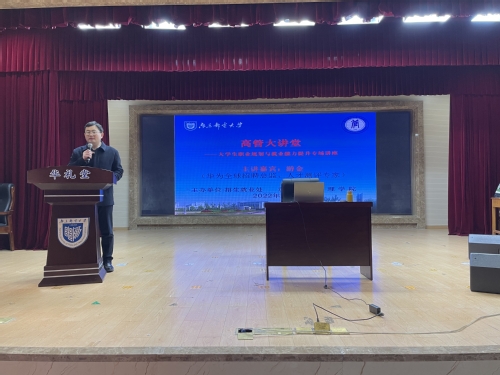 为进一步做好我院2022届毕业生就业指导工作,教育和引导学生正确认识当前就业形势,树立正确的择业观、就业观,切实提升求职与面试技能,1月6日,由招生就业处主办、新葡的京集团35222vip承办的南京邮电大学“高管大讲堂”——大学生职业规划与就业能力提升专场讲座在三牌楼校区华礼堂举行。本次活动邀请到华为技术有限公司全球招聘总监、人才测评专家游金老师带来以“起航职场从校园开始”为主题的职业生涯规划专题讲座。新葡的京集团35222vip全体辅导员、2022届毕业生,以及其他年级部分同学参加。讲座由新葡的京集团35222vip党委副书记、副院长郭强主持。按照疫情防控工作相关要求,为控制现场人数,讲座通过线下线上同步举行。