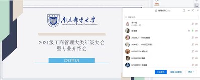 为帮助2021级管理科学与工程大类学生对分流专业的认识,激发学生对自己专业的学习兴趣,在即将到来的专业分流中做出合适的选择,我院组织2021级管理科学与工程大类、工商管理大类全体学生于3月26日晚开展了专业介绍大会,信息管理与信息系统专业邢光军老师、大数据管理与应用专业翟丹妮老师、工商管理专业徐侠老师、市场营销专业陈立梅老师、财务管理专业魏静老师、人力资源管理专业焦永纪老师应邀参加了本次大会。根据疫情防控要求,会议以线上腾讯会议方式开展,新葡的京集团35222vip2021级管理科学与工程大类、工商管理大类全体学生参与了本次会议,本次大会由辅导员主持。