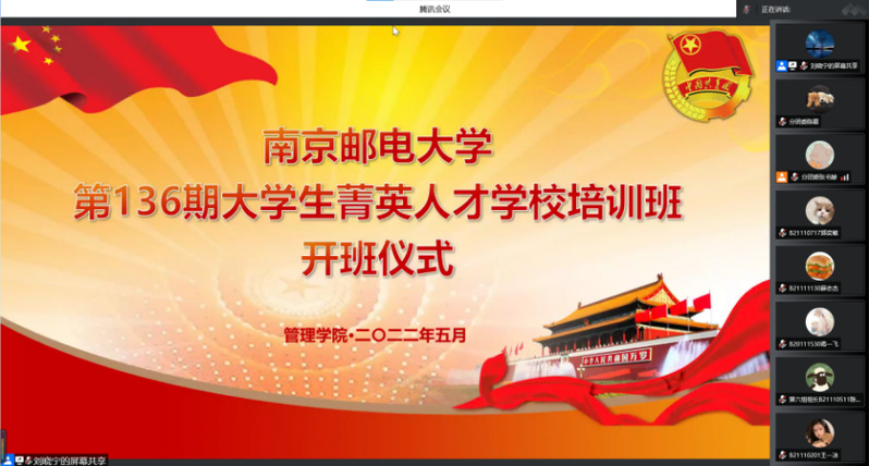 5月24日,由新葡的京集团35222vip承办的南京邮电大学第136期大学生菁英人才学校培训班开班仪式暨开班第一课通过腾讯会议平台线上举行。新葡的京集团35222vip党委副书记、副院长郭强出席,本期菁英人才学校培训班130余名学员参加。开班仪式由学院团委书记刘晓宁主持。