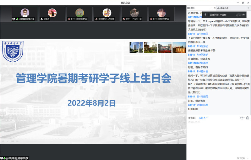 本次暑期考研学子线上生日会,体现了学校、学院对于考研学子的关怀,坚定了考研学子的备考信心,提高了同学们的归属感,也为后续工作奠定了坚实的基础。