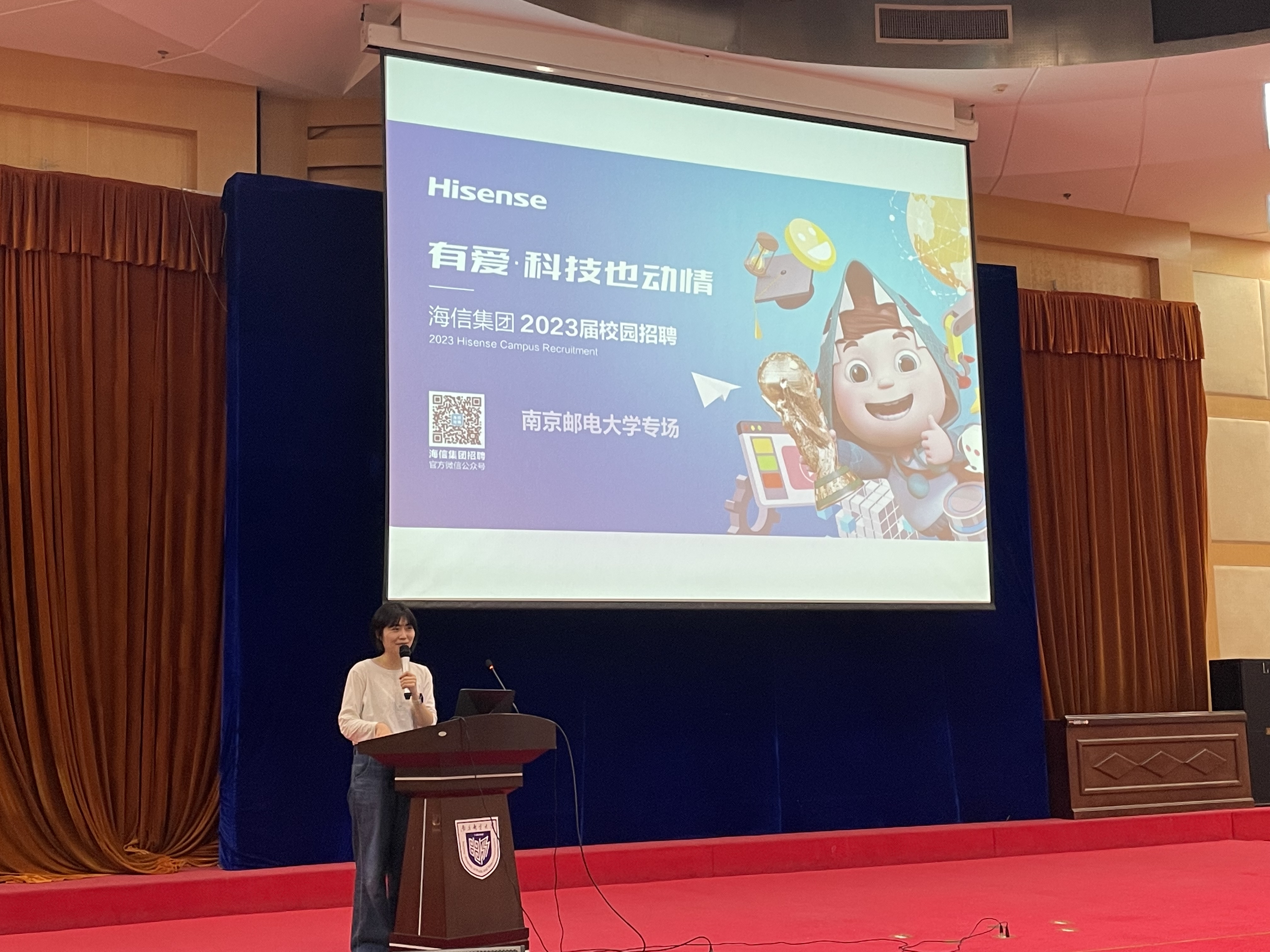 由南京邮电大学招就处主办、新葡的京集团35222vip承办的海信集团招聘宣讲会于2023年3月10日下午14:30在我校三牌楼校区科技会堂二楼举行。本次招聘宣讲会旨在展示海信集团的品牌形象,介绍企业文化、招聘岗位、职工待遇等方面的信息,为南邮学子提供好的个人发展平台。