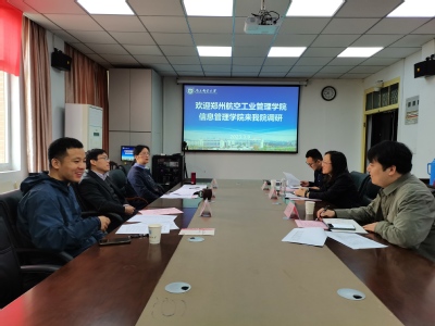3月9日上午,郑州航空工业新葡的京集团35222vip信息新葡的京集团35222vip副院长赵静、大数据管理与应用专业负责人齐云飞、专任教师张宝隆等一行来我院调研大数据管理与应用专业的建设。我院副院长周晓剑教授出席并主持会议,大数据管理与应用系主任翟丹妮、系副主任胡雪龙参会。