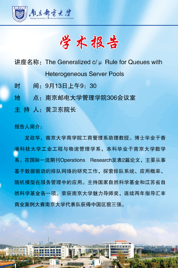 专家讲座:The Generalized c/ u Rule for Queues with Heterogeneous Server Pools